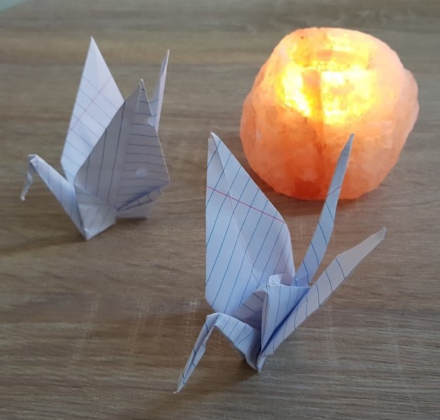 I always loved doing Origami as a kid, and one of the good things about being in a relationship is that you have someone to share all those old, forgotten interests with – and revive them. We started off with a staple of origami – the ubiquitous paper crane – which turned out to be a challenging but rewarding first model for a novice. Now we have something else to decorate our windowsill with. If I can find the instructions, frogs and koalas are next on the list…